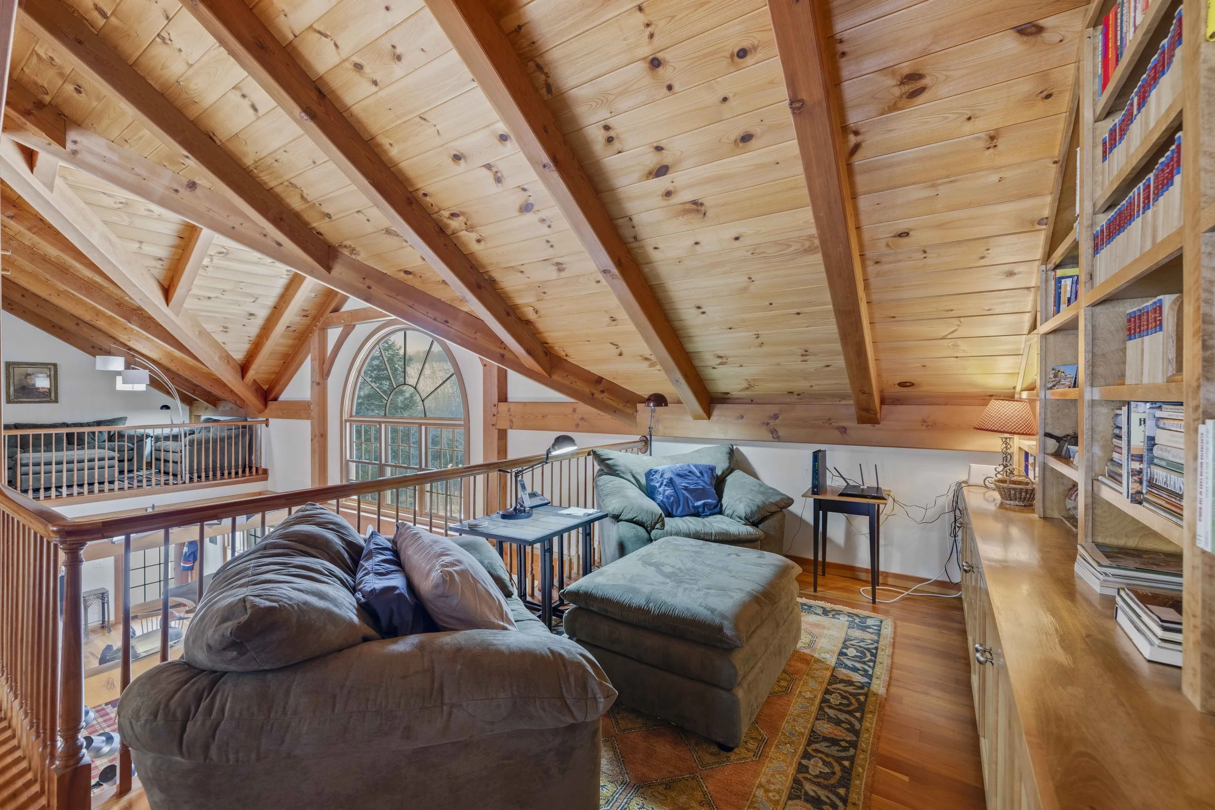 TIGERTOWN LODGE- Remarkable getaway/adventure property, this newer, beautifully maintained timberframe residence on 167.5 acres is located just 16 mins to Norwich Village, 20 mins to Hanover and 25 mins to Woodstock. Privately situated on the property, the main residence and attached garage with guest apartment are situated in the middle of a wonderful outdoor playground with miles of trails and an open field/playground behind the house. The approximately 6,000 sq. ft. Davis timberframe house has vaulted ceilings, open floorplan and features a gourmet kitchen, bar/dining room, large living room and a big fireplace, and a first floor primary bedroom with ensuite bath. The walk-out lower level is currently setup as a game room/den. 4 rooms in the main house are set up as bedrooms (plus the apartment).
